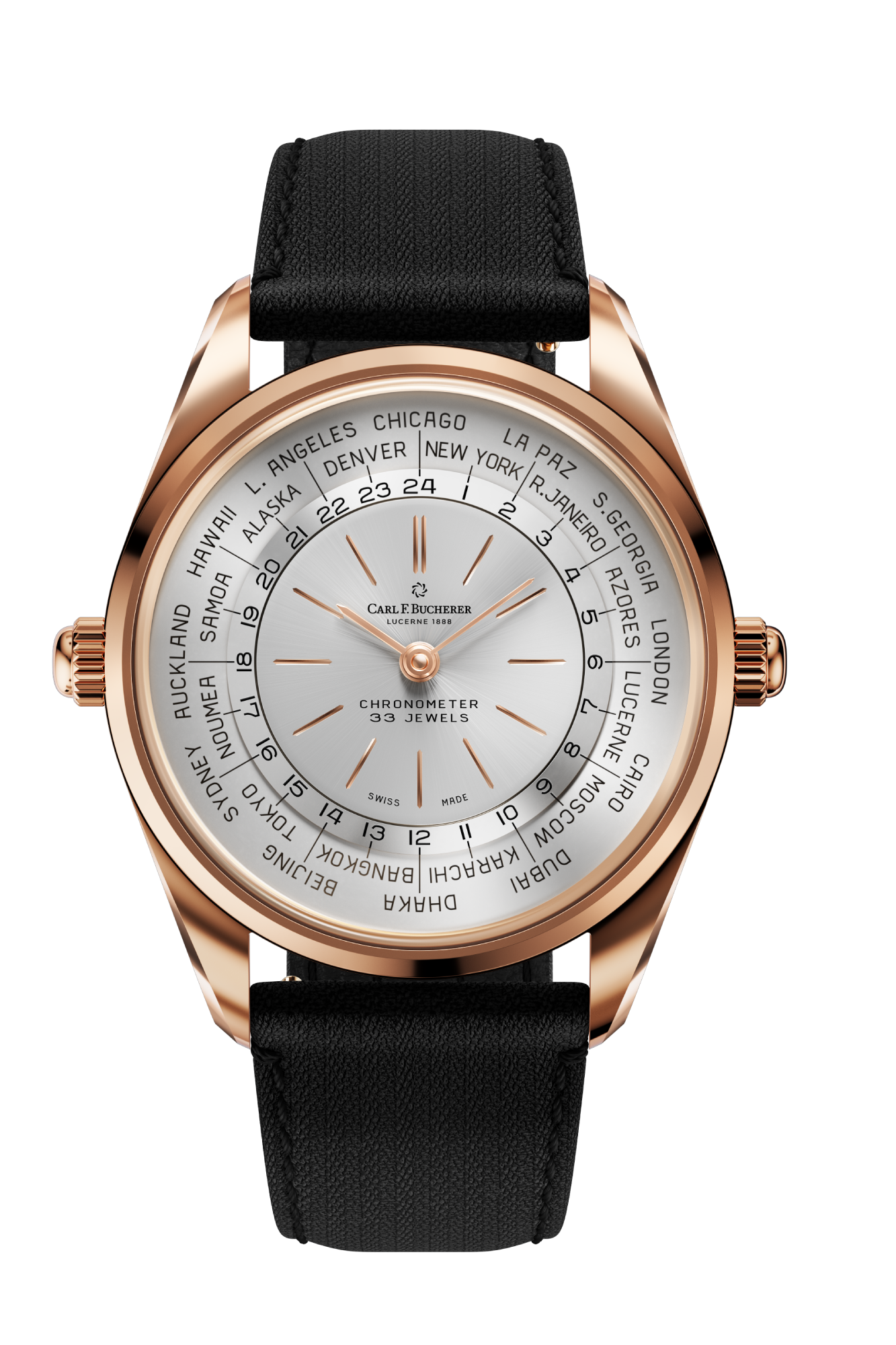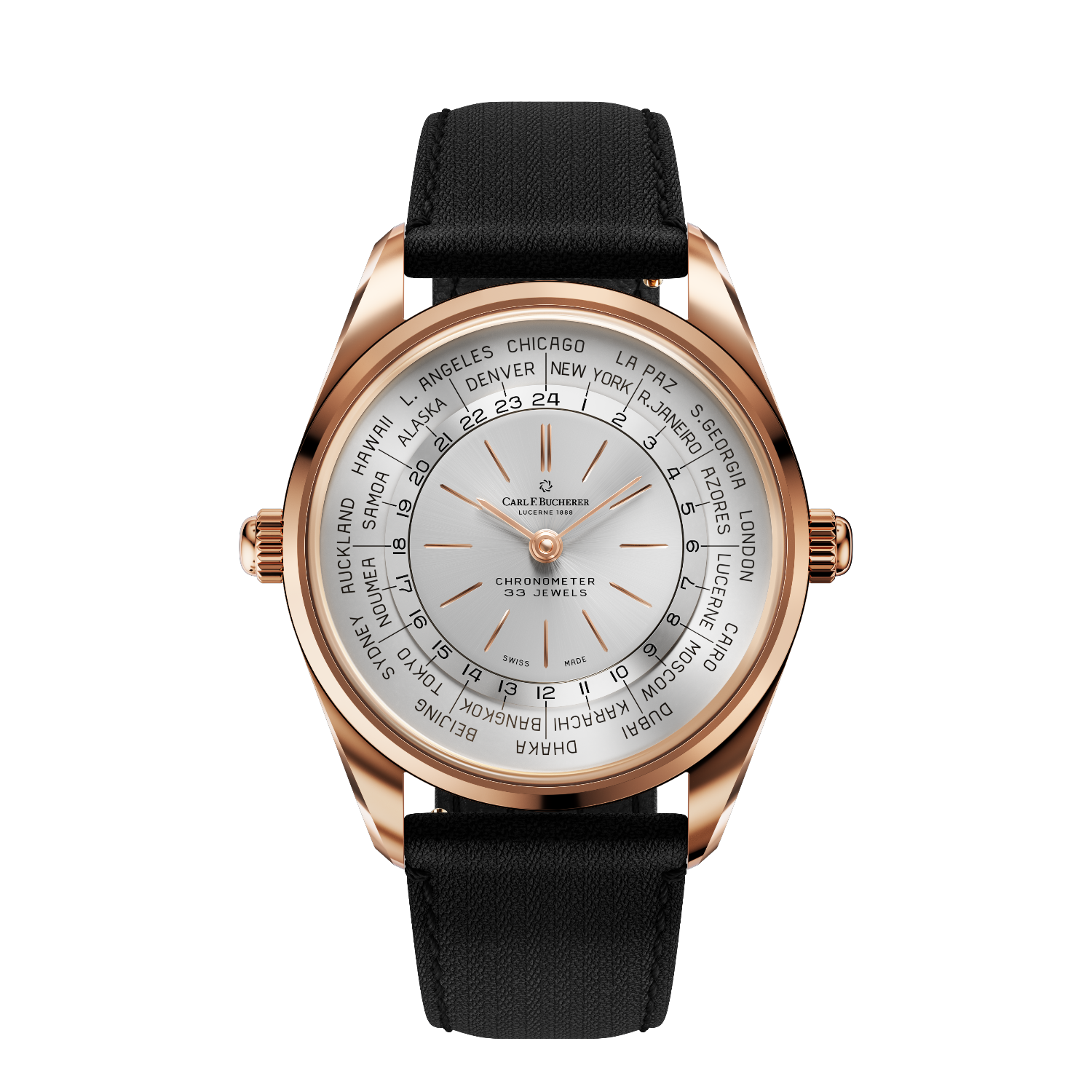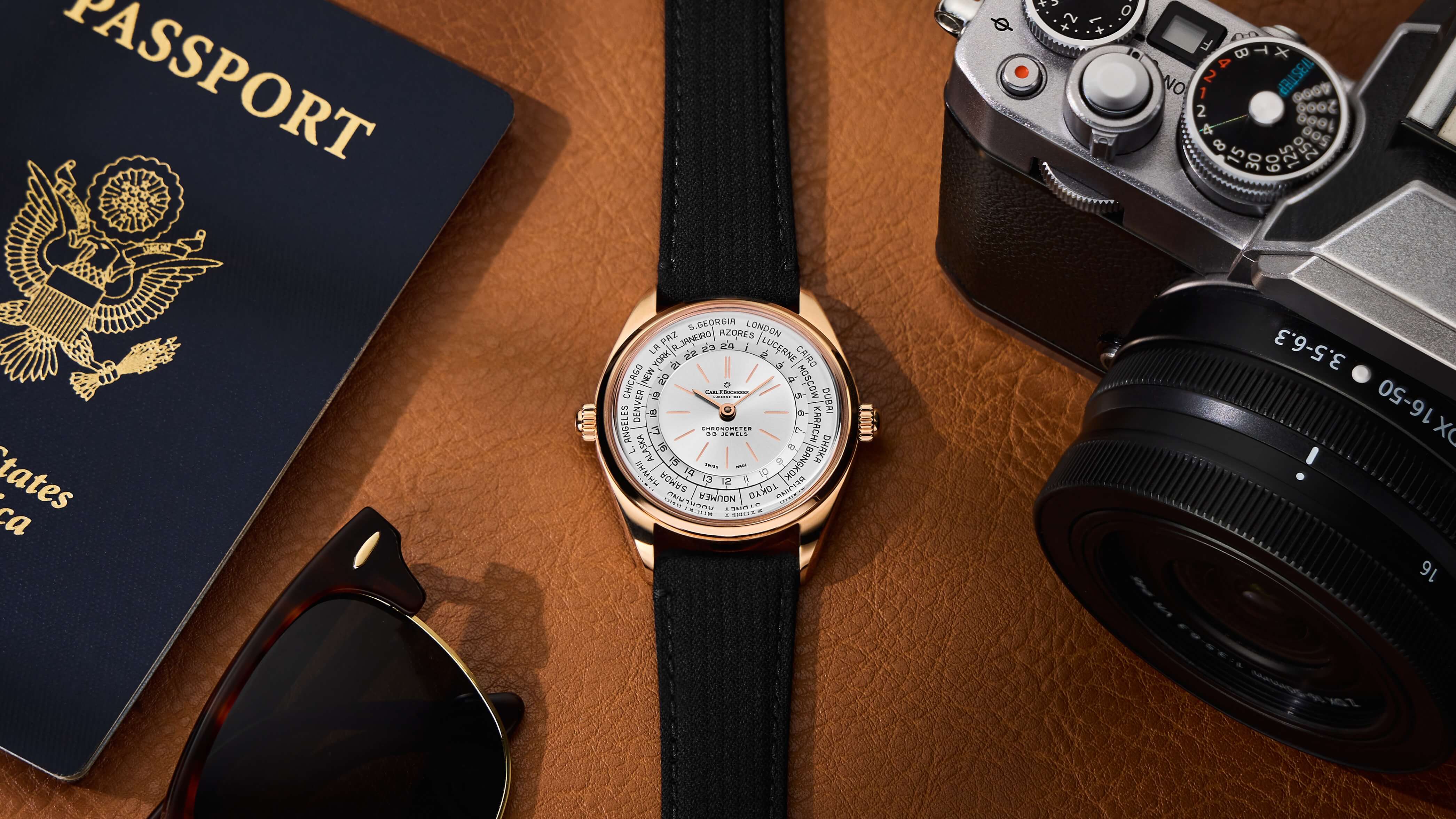 The original Worldtimer appealed to this new generation of travelers by being one of the first watches to incorporate a second time zone. At the time, the timepiece brought to life the brand’s cosmopolitan spirit and global mindset – values that remain as important today as they were then. It also demonstrated the technical finesse of its watchmakers, as displaying two time zones simultaneously on one watch was completely new. The timepiece demonstrated how CFB’s watch designers were themselves Exploring Time. This was expressed through an innovative case complication that deployed a simple gear train, operated by a second crown at 9 o'clock, to drive a city disk that displays a second time zone, as required.
