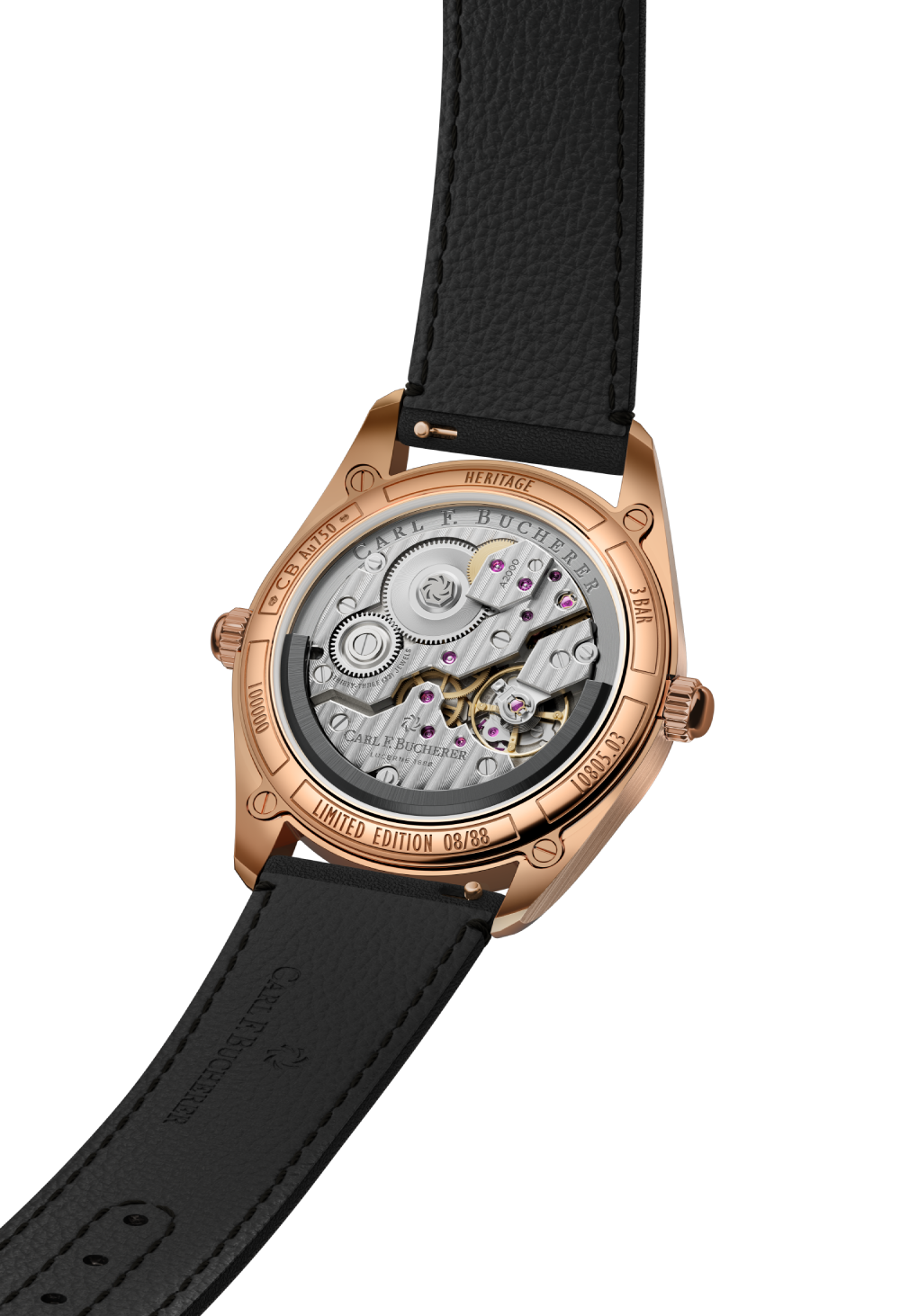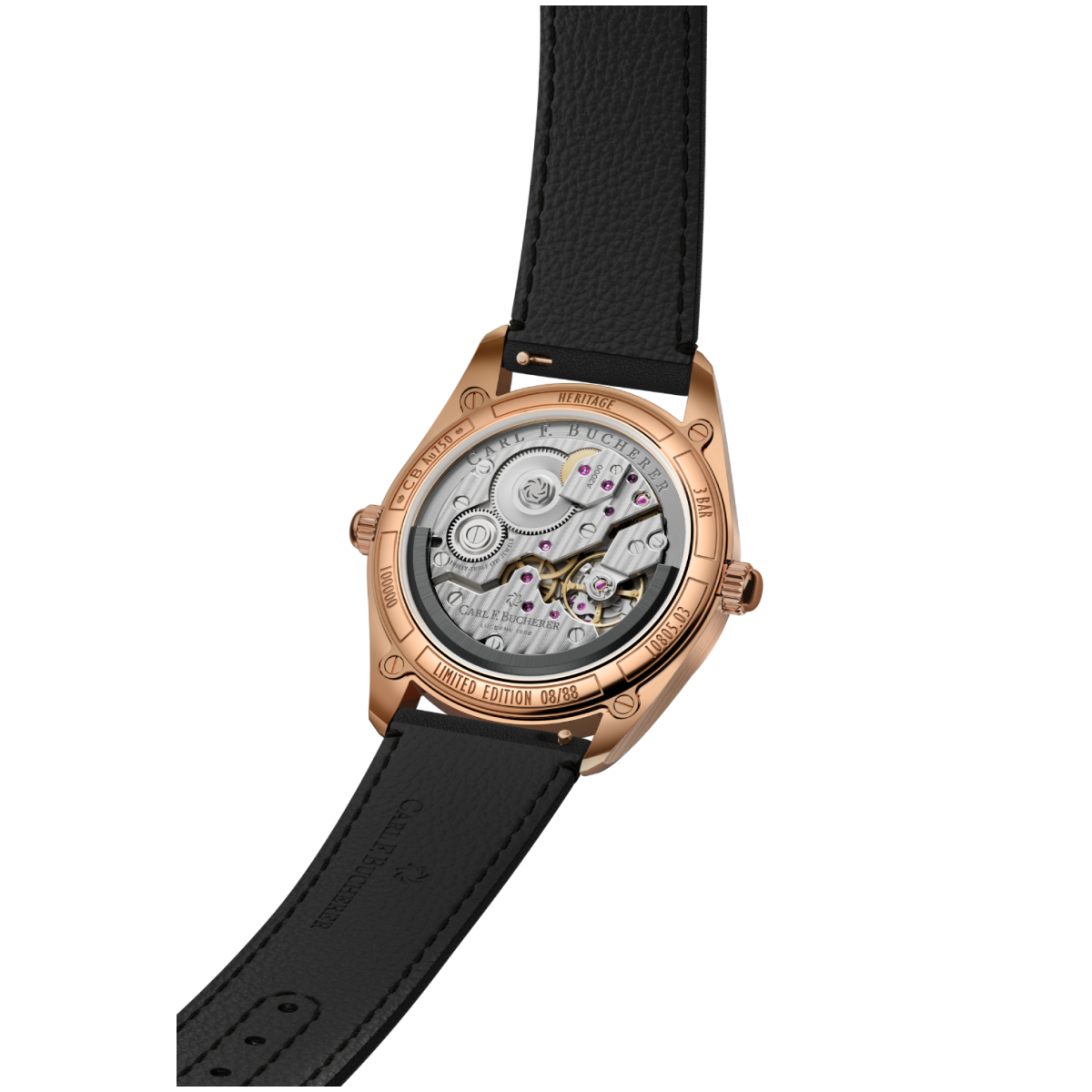 The new timepiece is powered by a CFB A2020 manufacture movement, offering the accuracy and precision of a COSC-certified chronometer, and incorporating CFB’s signature Peripheral Technology. CFB is at the forefront of Peripheral Technology, which repositions critical parts of the movement by moving them around the periphery via ball bearings, rather than around a central rotor or attached to the movement’s plates or bridges. This striking innovation reflects CFB´s technical finesse and comes with multiple benefits, including a thinner movement that is never obscured when viewed through the sapphire case back. In this watch, this is showcased with a peripherally mounted, bi-directional automatic winding system.