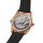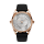 Sunray brushed silver with engraved rose gold plated index marks, matt silver external zone with 24-hour indication