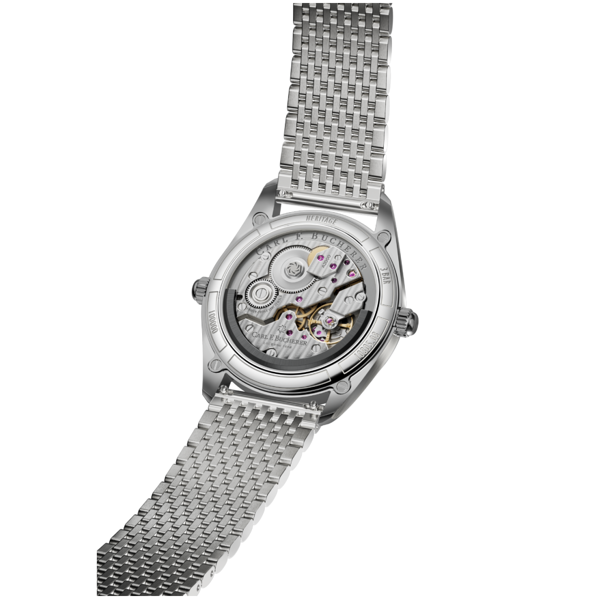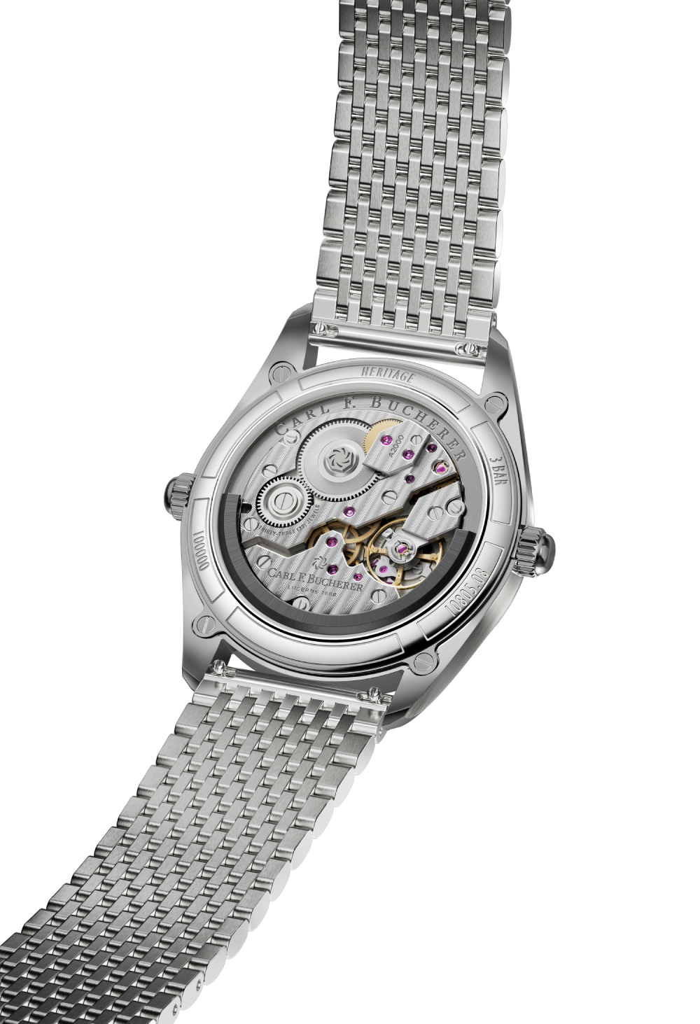 The new timepiece is powered by a CFB A2020 manufacture movement, offering the accuracy and precision of a COSC-certified chronometer, and incorporating CFB’s signature Peripheral Technology. CFB is at the forefront of Peripheral Technology, which repositions critical parts of the movement by moving them around the periphery via ball bearings, rather than around a central rotor or attached to the movement’s plates or bridges. This striking innovation reflects CFB´s technical finesse and comes with multiple benefits, including a thinner movement that is never obscured when viewed through the sapphire case back. In this watch, this is showcased with a peripherally mounted, bi-directional automatic winding system.